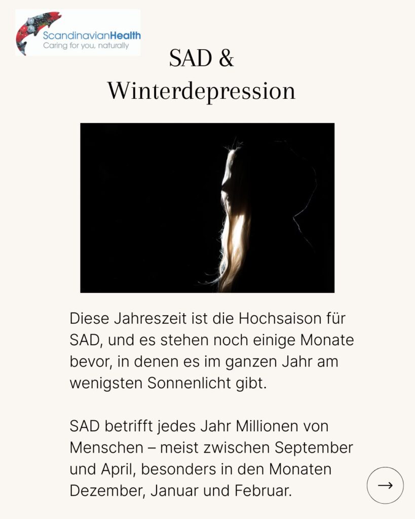 Das Ungleichgewicht dieser beiden Hormone steht in Verbindung mit der sogenannten SAD (Seasonal Affective Disorder) – einer saisonal bedingten Depression, die sich meist zwischen September und April zeigt, insbesondere in Dezember, Januar und Februar.